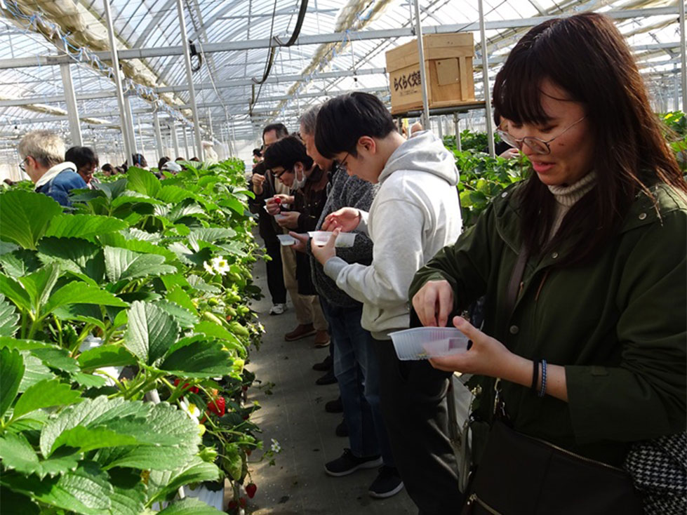 河口湖畔の旅の駅ではお買い物で楽しみ、お腹を満たしてから30分しか経っていないにもかかわらず、いちご狩りでは、別腹といって美味しく食べていました。